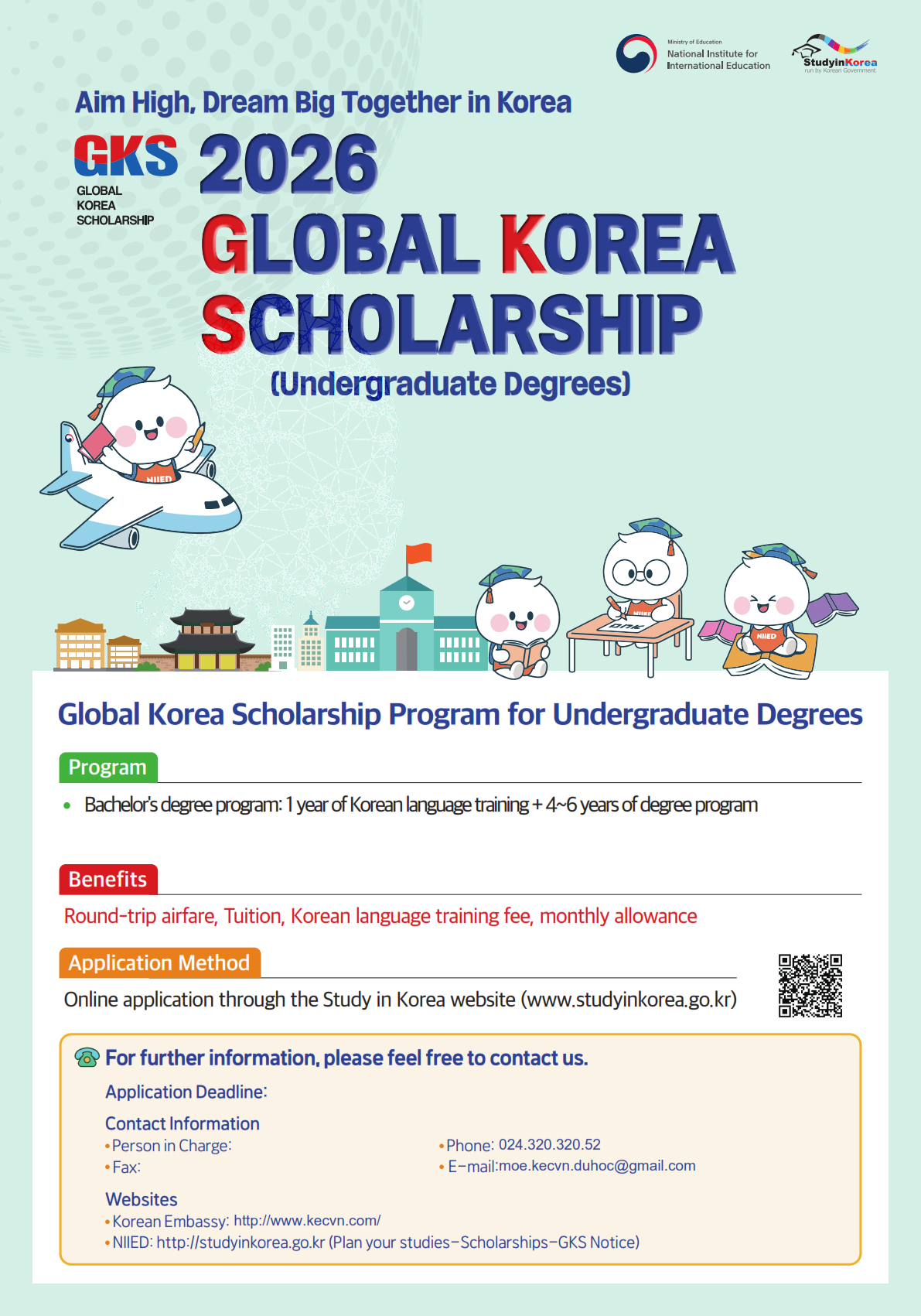 2026년 정부초청 외국인 학부 장학생(GKS-U) 모집 안내 - 주베트남 대한민국 대사관(공관) 전형 - 안녕하십니까?